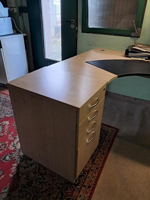 Biurko pod sprzęty elektroniczne, dodatek słupek z szufladami, jasne, bez uszkodzeń, z płyty.